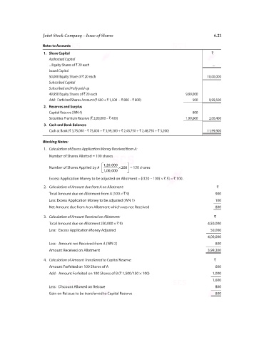 Add: Forfeited Shares Account (` 600 + ` 1,500 – ` 800 – ` 800) 500 9,99,500