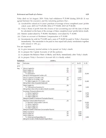 (a) to give necessary Journal entries to be passed on Vicky’s death.