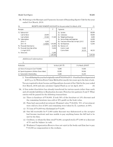 13. Following is the Receipts and Payments Account of Darjeeling Sports Club for the year