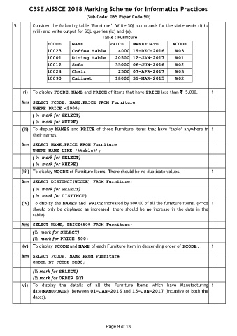 CBSE AISSCE 2018 Marking Scheme for Informatics Practices