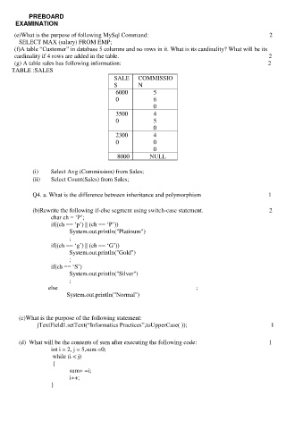(g) A table sales has following information: 2
