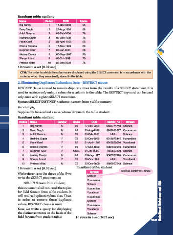 2. Eliminating Duplicate/Redundant Data—DISTINCT clause